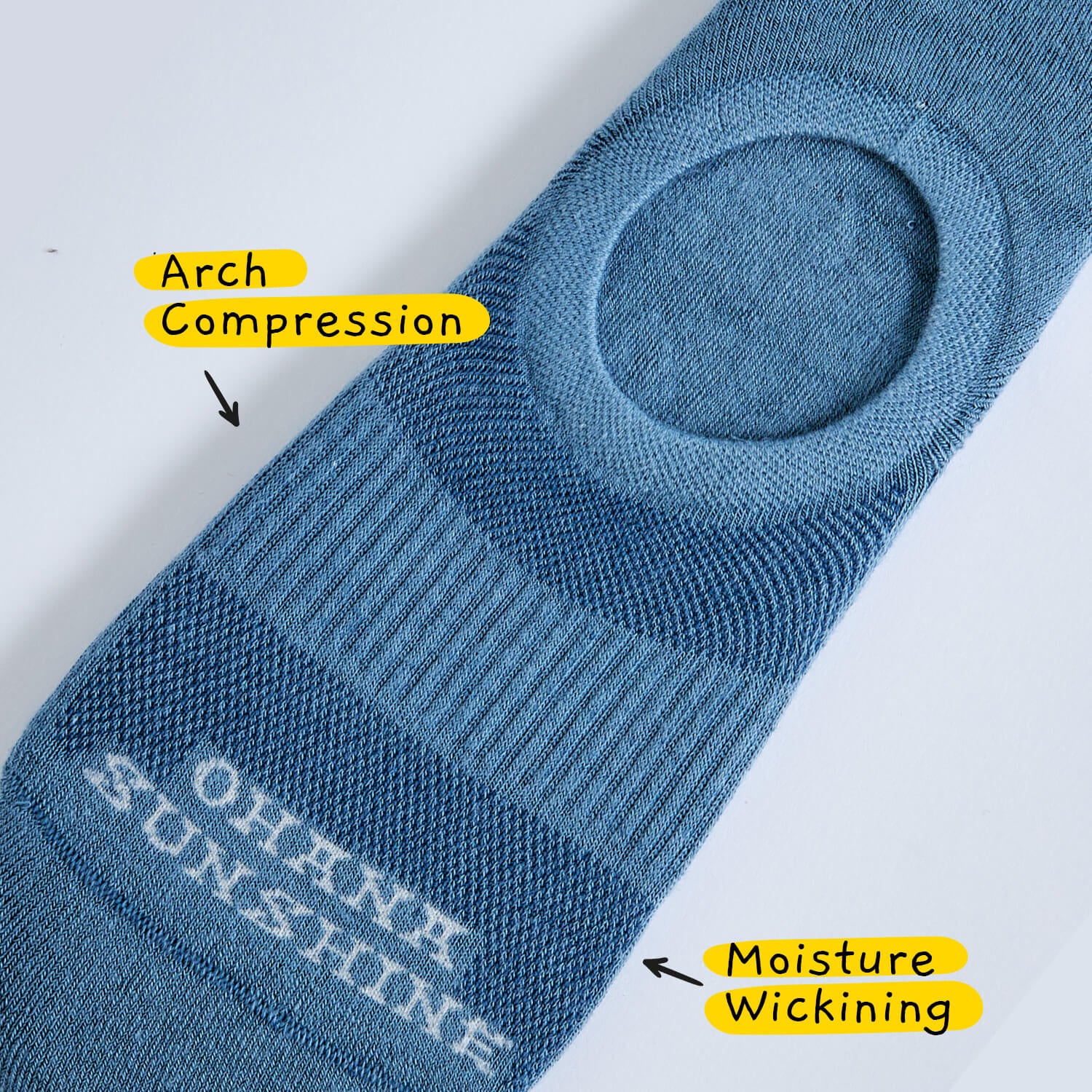 Say goodbye to slipping socks! Ohana Sunshine’s no-show socks feature silicone heel grips and a specialized Y-stitch design for a secure, comfortable fit. Enjoy enhanced balance, mobility, and the perfect blend of style and function with our performance-packed socks.
