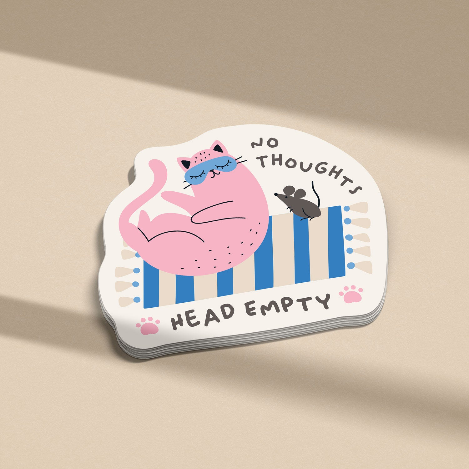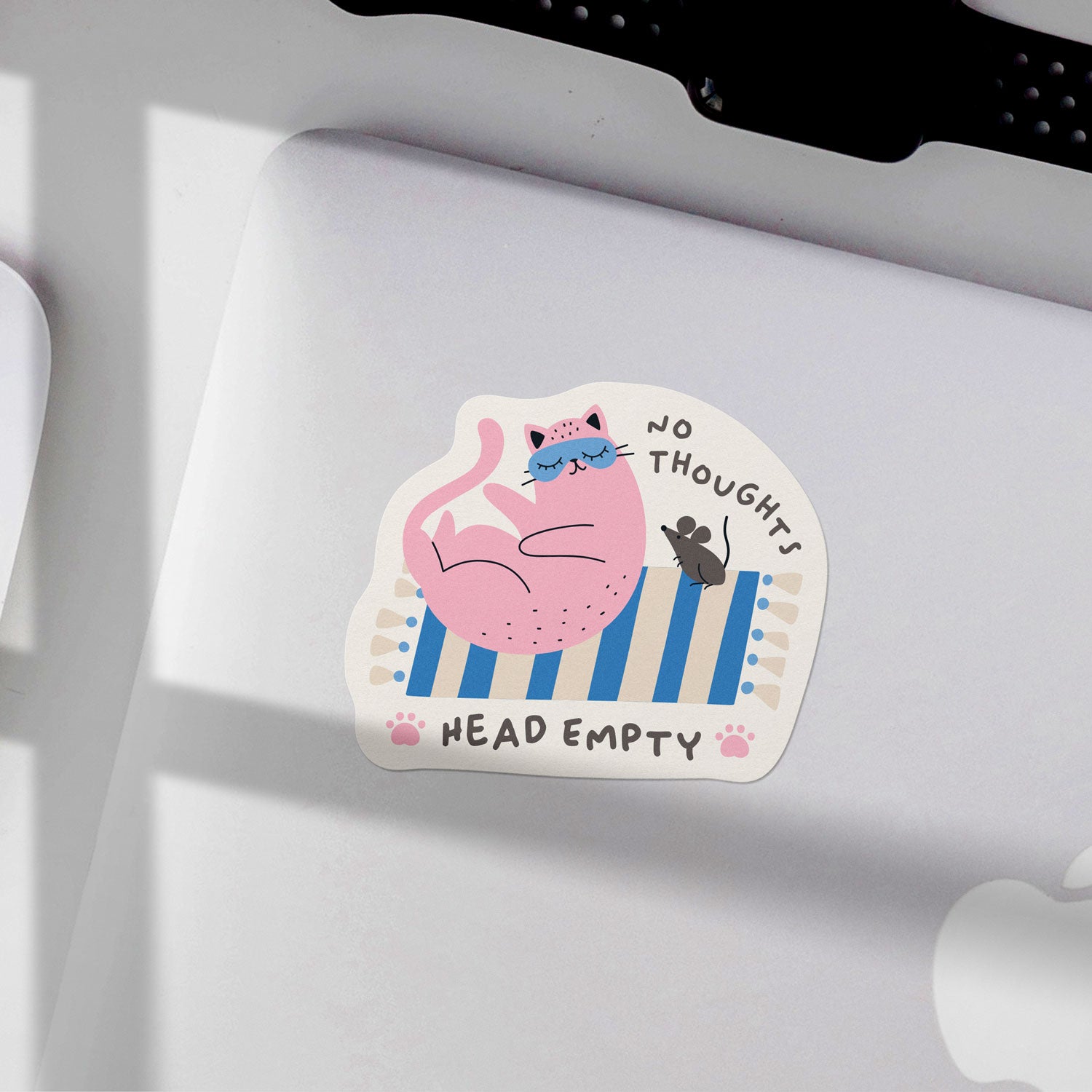 Embrace the carefree vibes with the No Thoughts Head Empty Cat Vinyl Sticker. Featuring a whimsical pink cat lounging without a care in the world, this sticker is perfect for anyone who enjoys a little light-hearted humor. The playful design, complete with a cute mouse companion, makes this sticker a delightful addition to your collection.