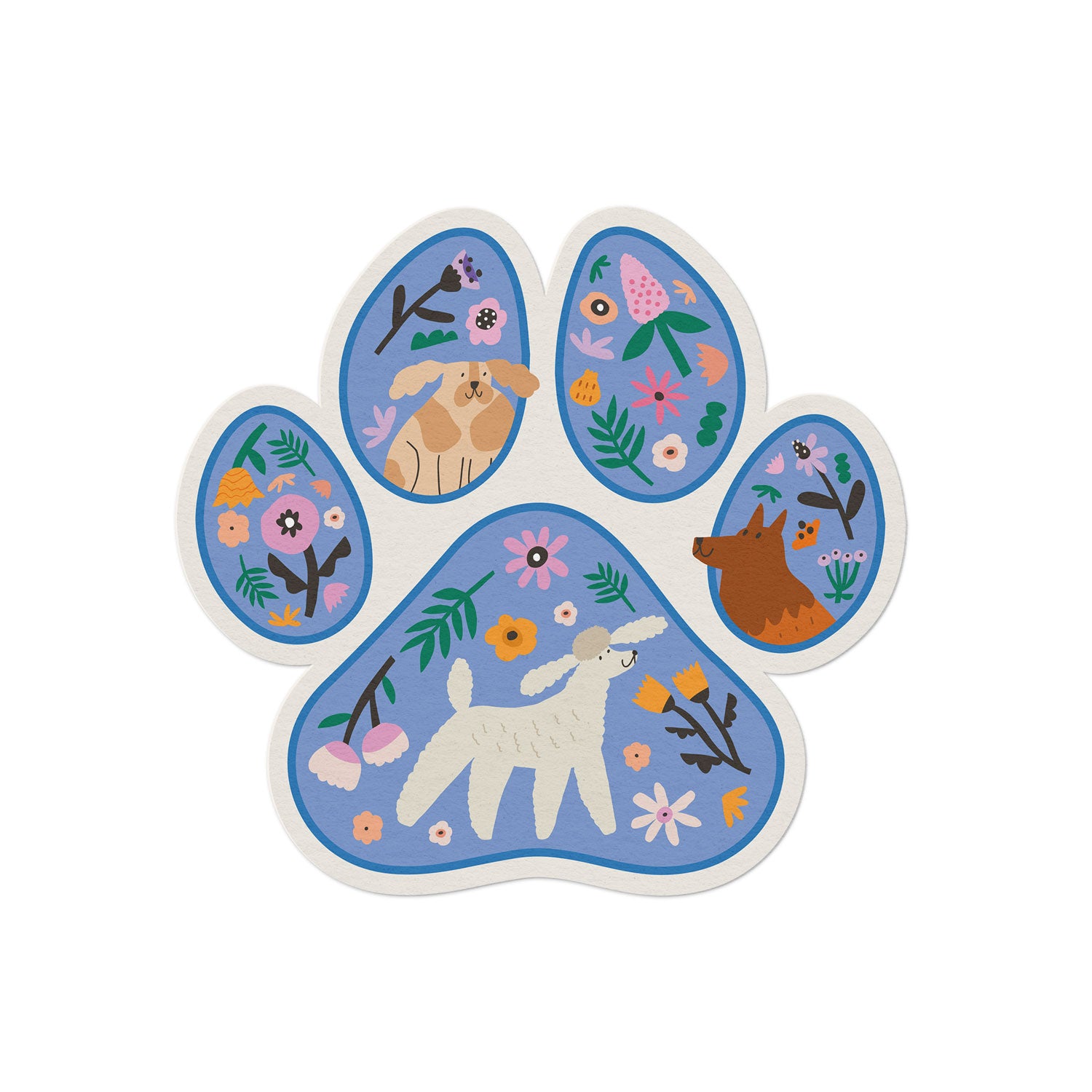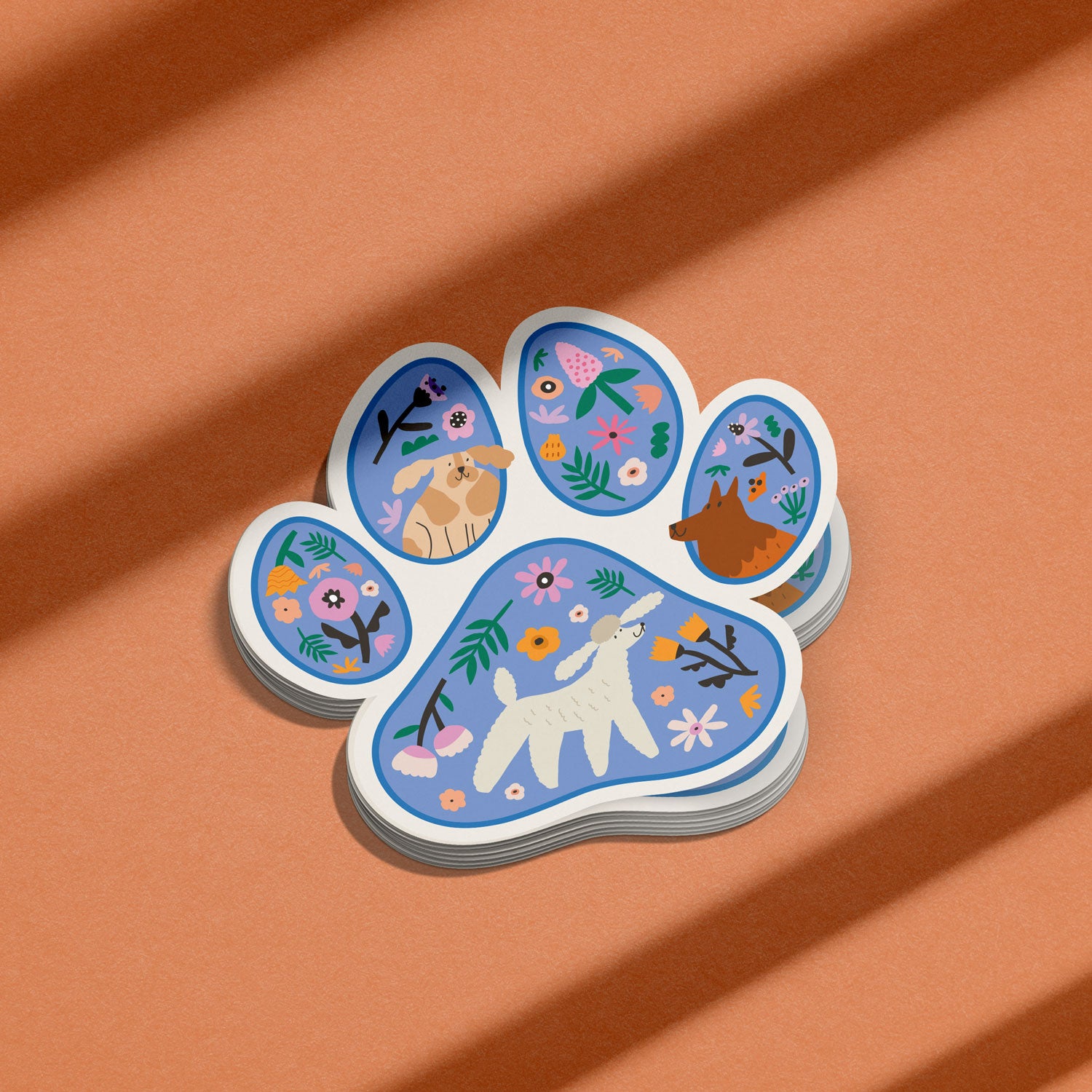 Celebrate your love for dogs with the Paw Print Dog Vinyl Sticker. This adorable sticker features a charming paw print design filled with cute dog illustrations and vibrant floral accents, making it a delightful addition to any dog lover’s collection. Perfect for expressing your love for your furry friends, this sticker adds a touch of whimsy and warmth to your personal items.