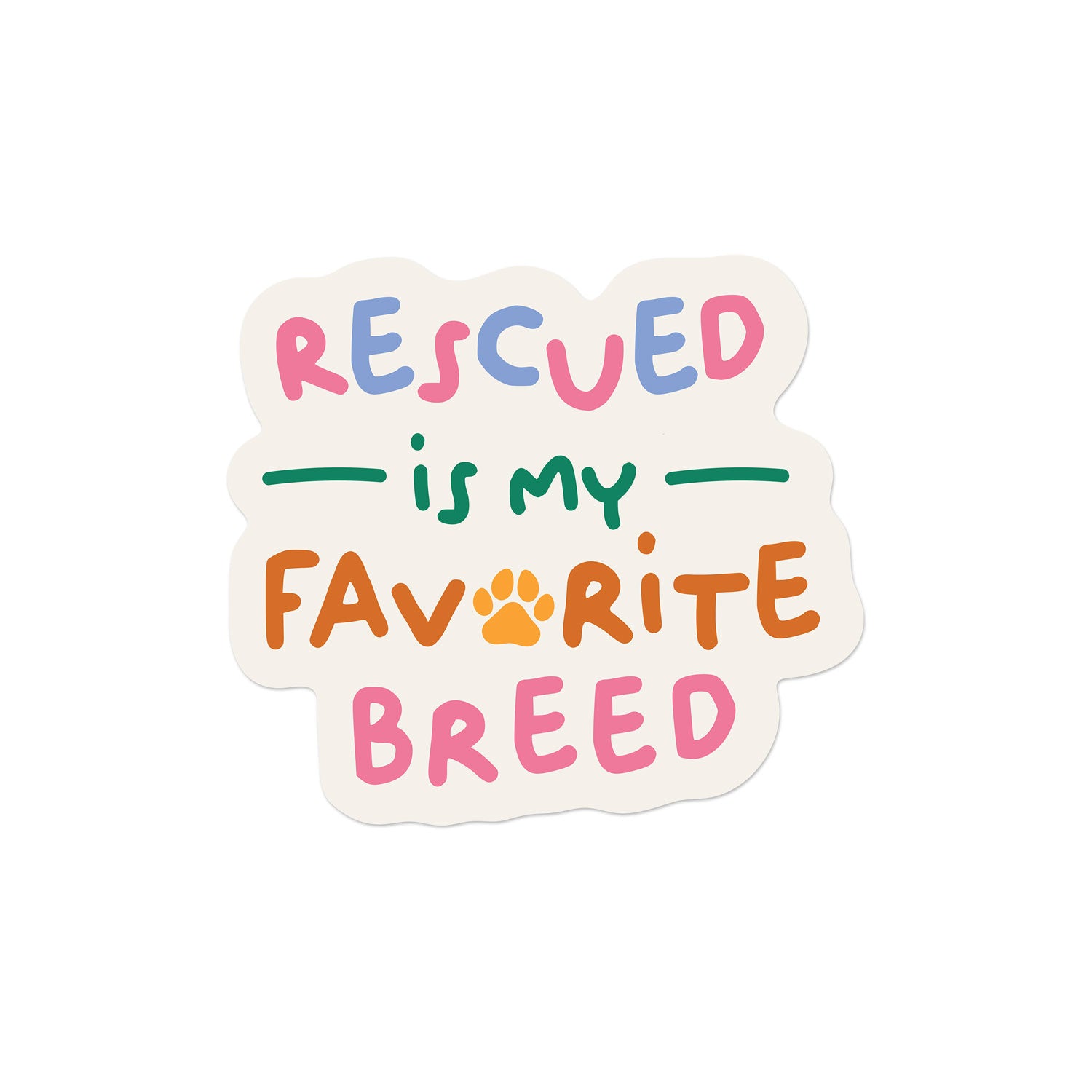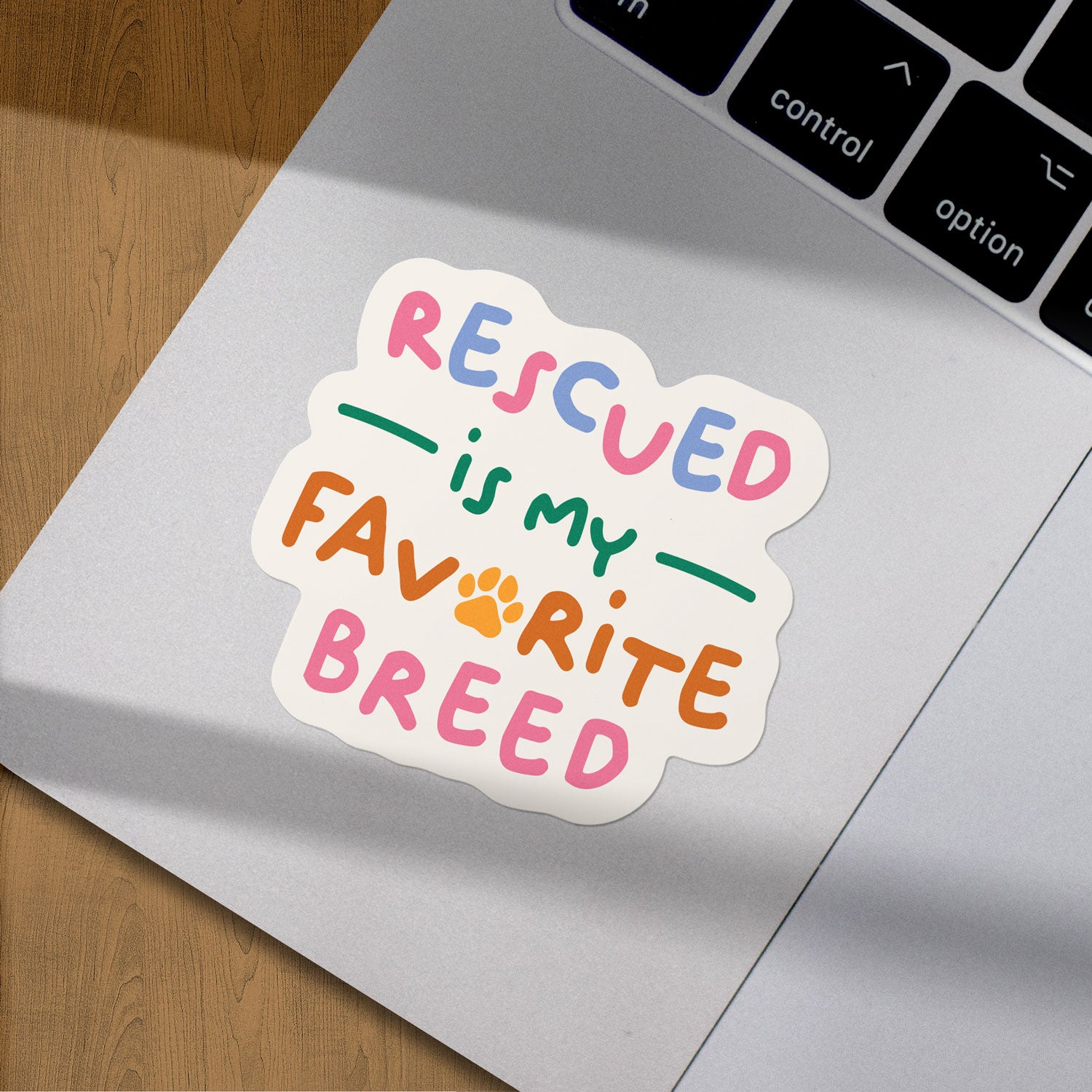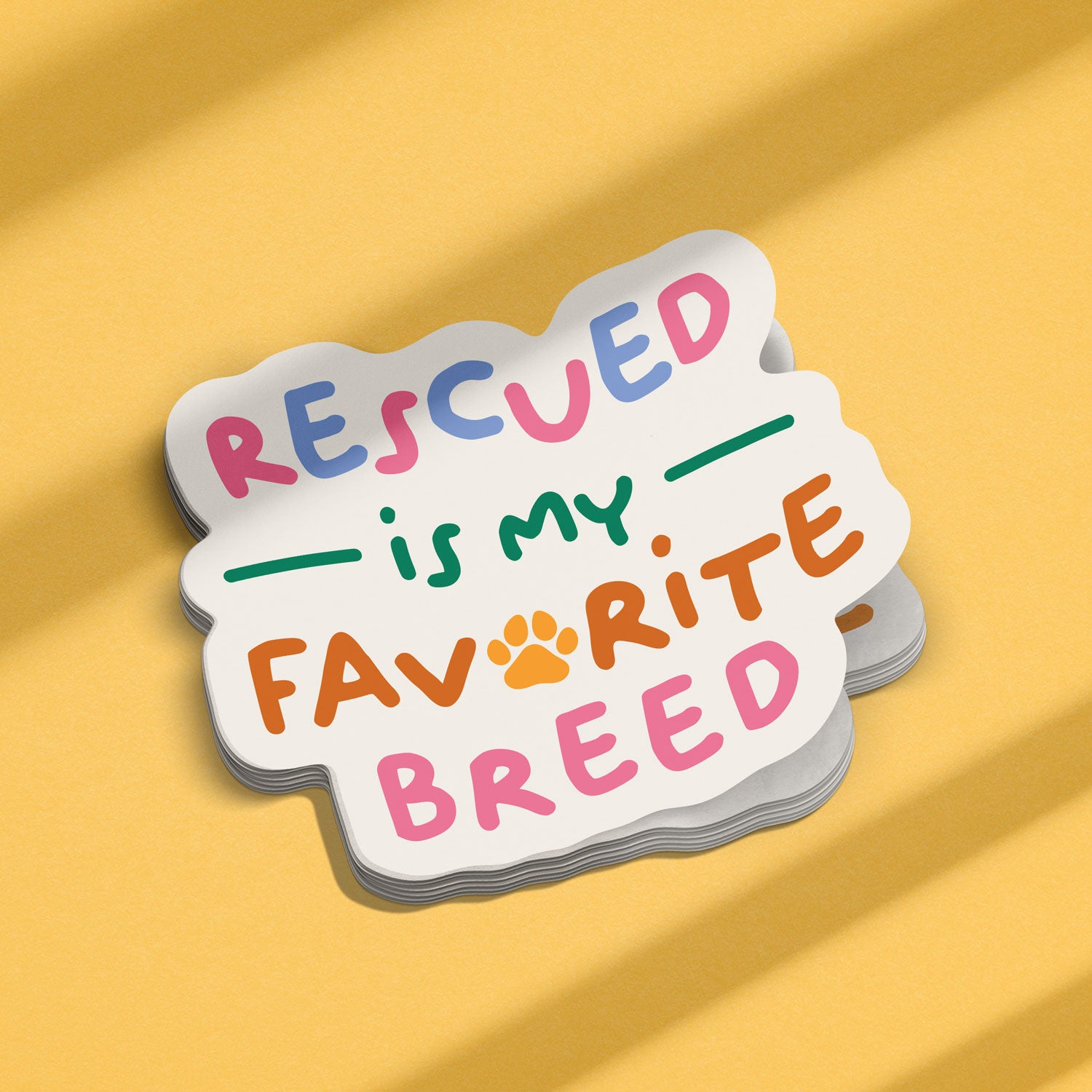 Show your love for rescue animals with our "Rescued is My Favorite Breed" Vinyl Sticker. This bright and colorful sticker is a wonderful way to express your passion for adopting and caring for pets in need. Featuring playful typography and a cute paw print, this sticker adds a touch of warmth and advocacy wherever you place it.