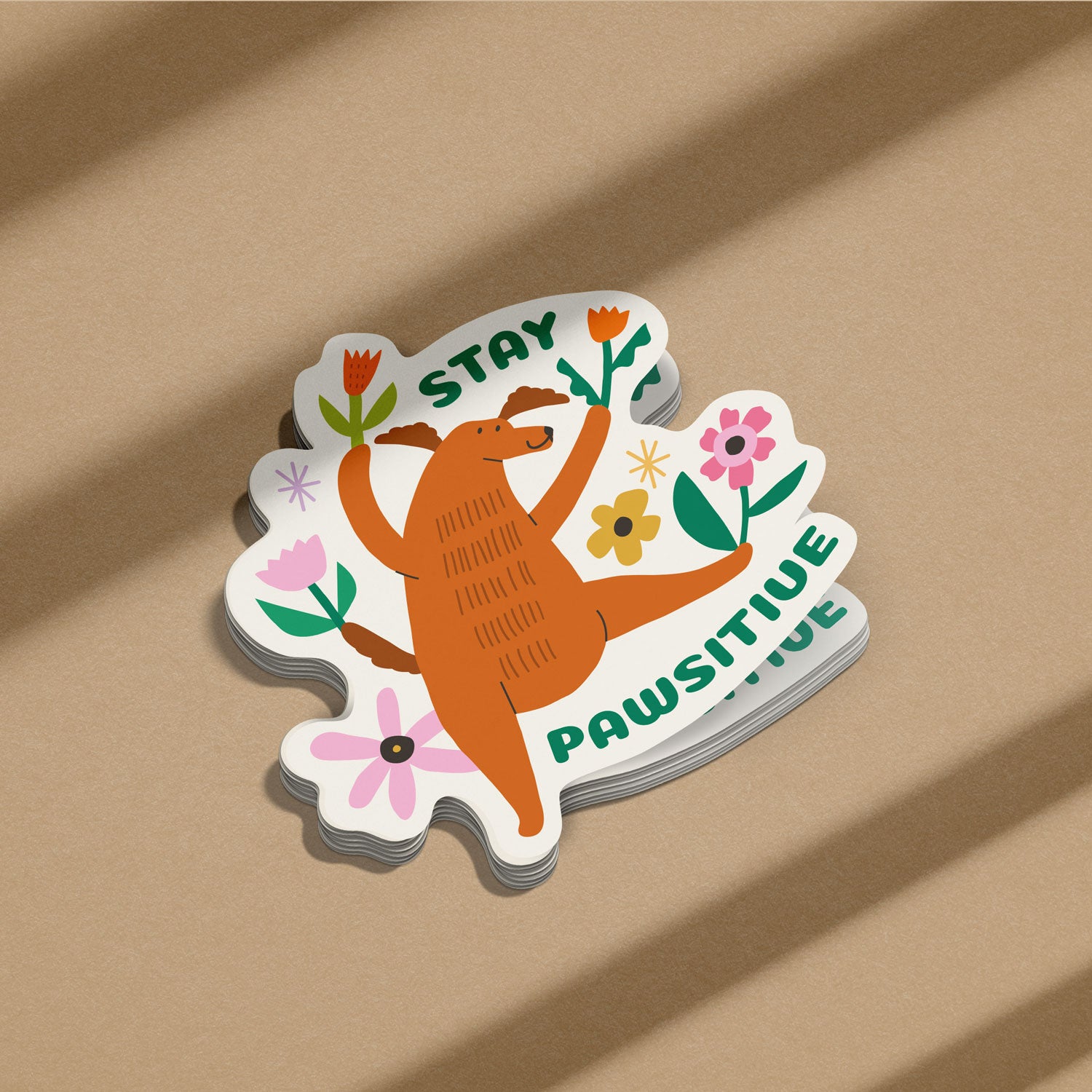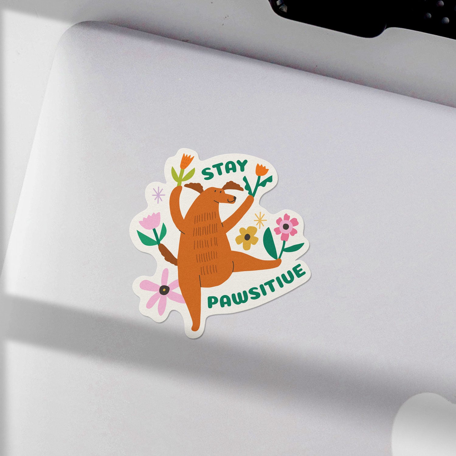 Brighten your day with the Stay Pawsitive Dog Vinyl Sticker. Featuring an adorable dog surrounded by vibrant flowers and the uplifting message "Stay Pawsitive," this sticker is the perfect reminder to keep a positive mindset no matter what comes your way. Ideal for dog lovers and positivity enthusiasts alike, this charming sticker brings joy and warmth wherever you place it.
