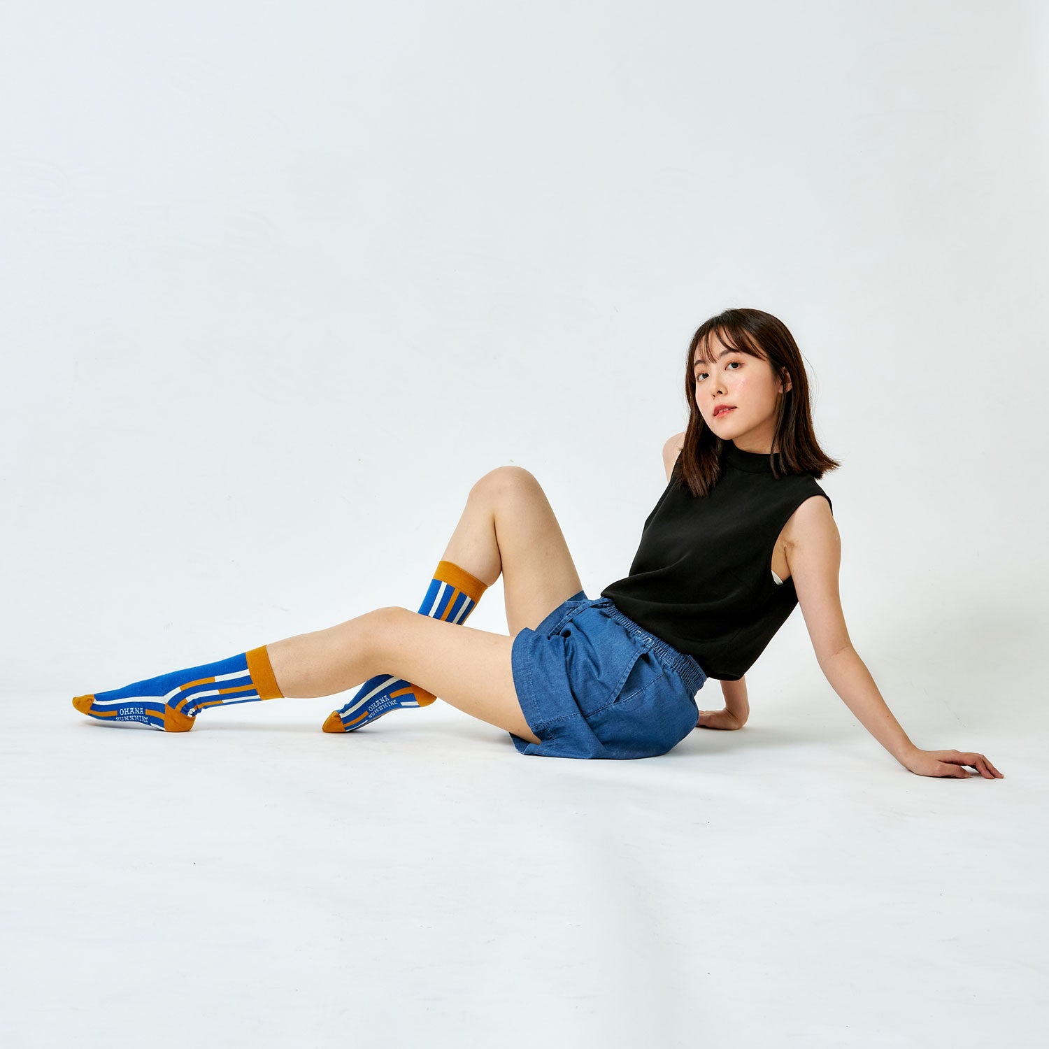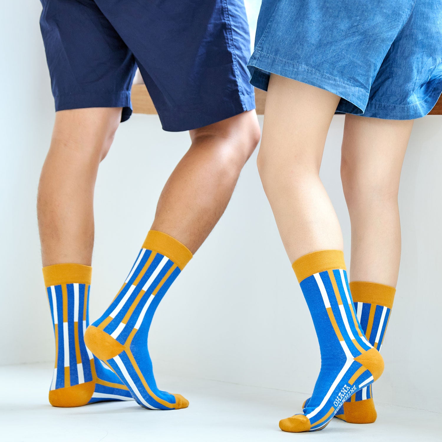 Stripe Trifecta Crew Socks |  Blue & Brown | Soft Combed Cotton
