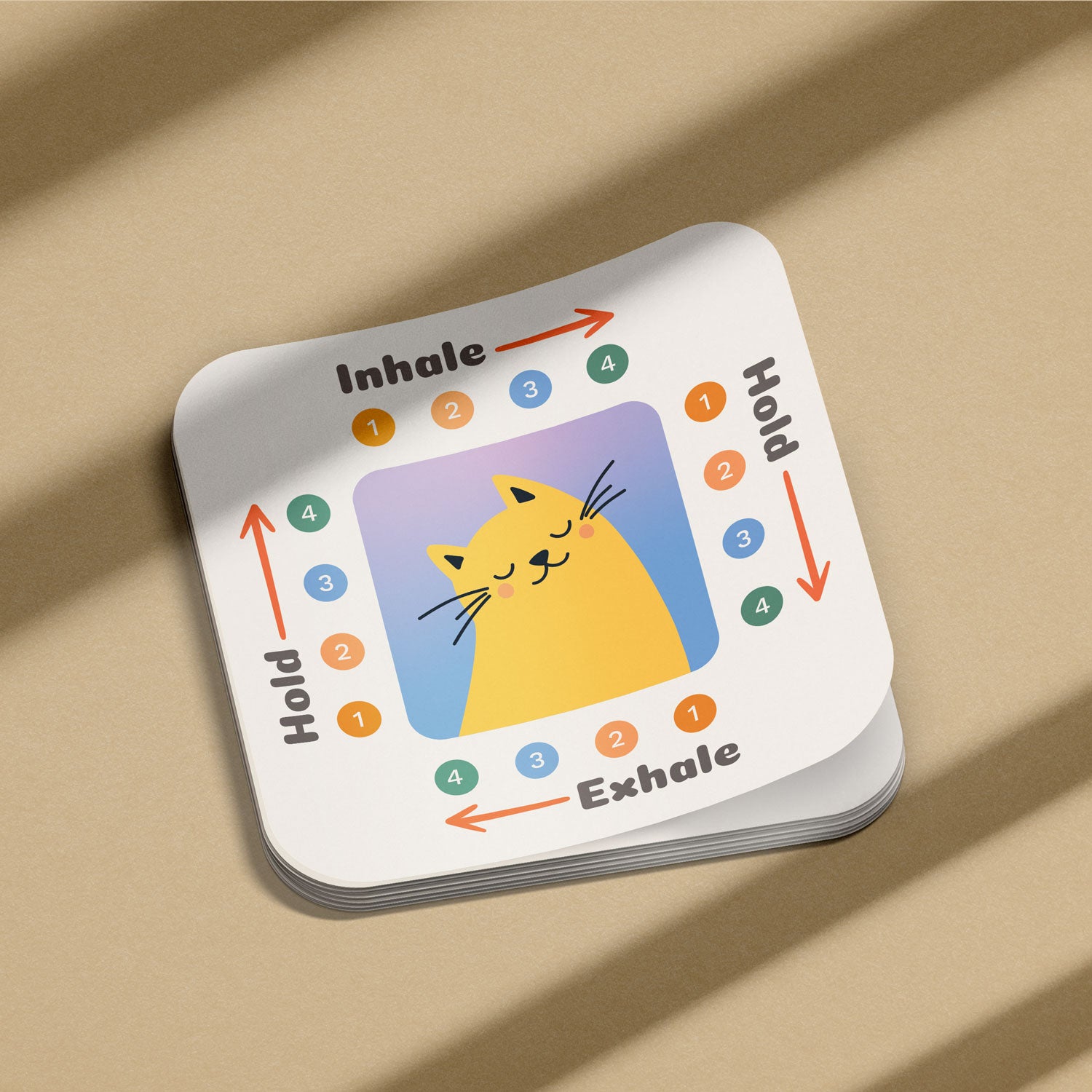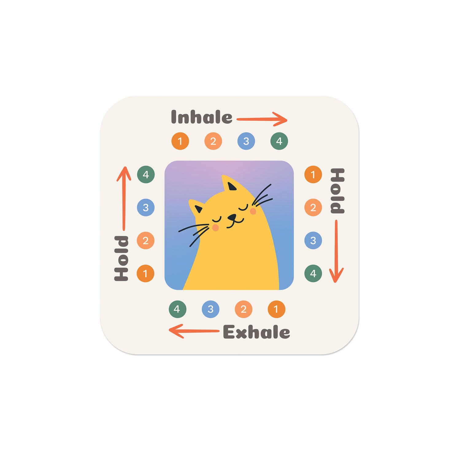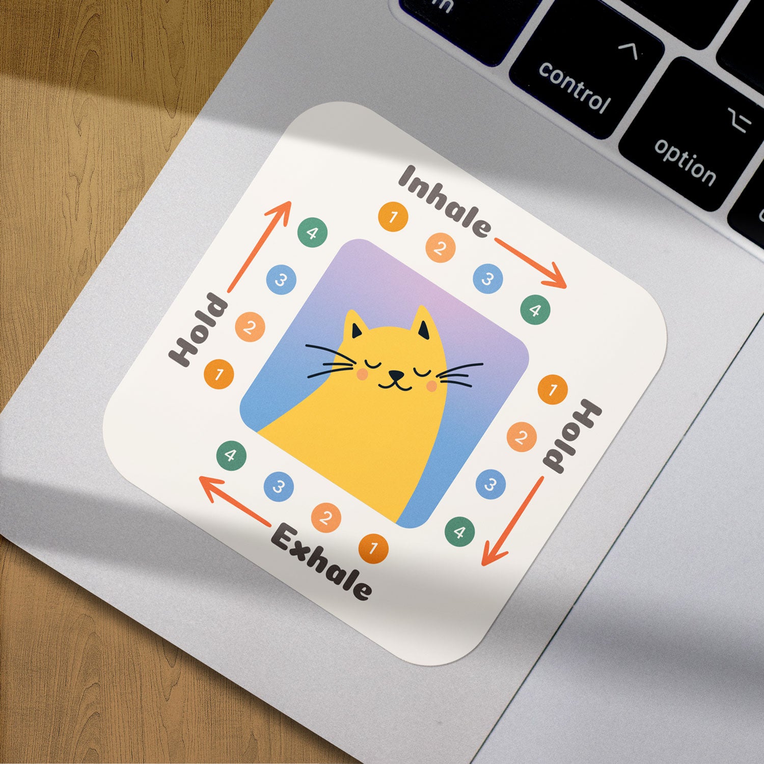 Find your calm with the "Zen Cat Breathing Exercise Sticker". Featuring an adorable, serene cat illustration at the center, this sticker is designed to guide you through a simple yet effective breathing exercise, promoting mindfulness and relaxation.